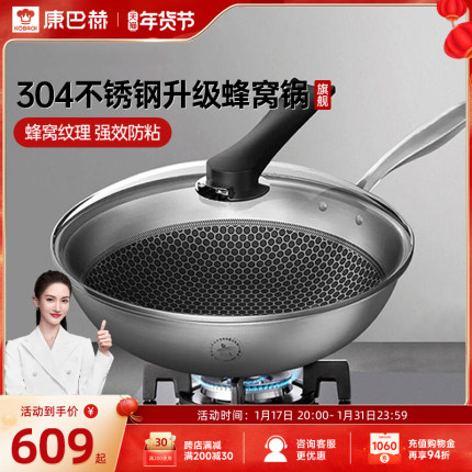 康巴赫 无油烟蜂巢 304 不锈钢不粘锅 32cm 史低 159 元包邮