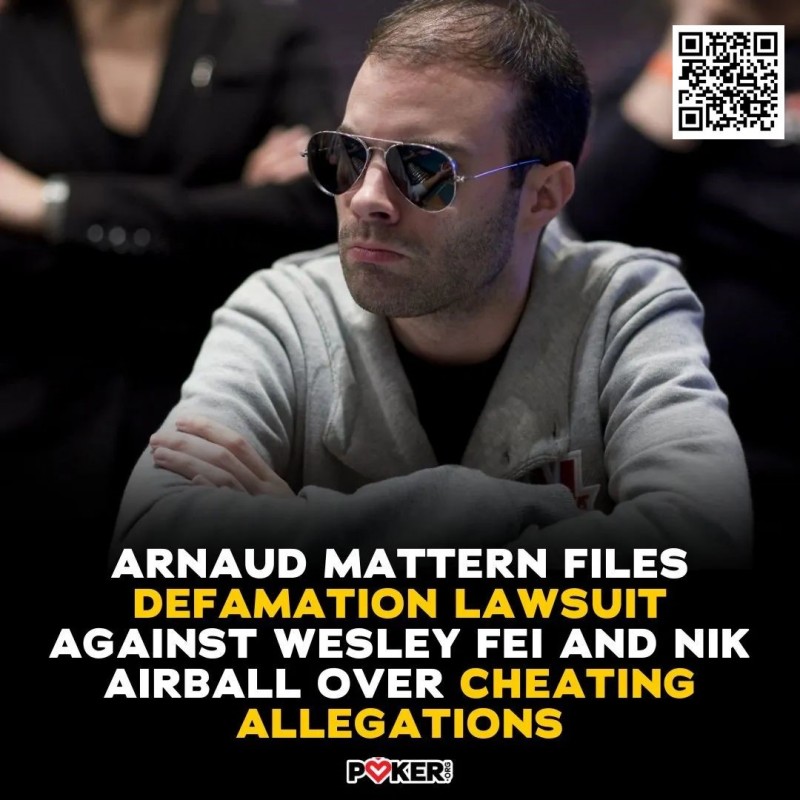 Hustler Casino Live的两位常客玩家Airball和Wesley,指控Arnaud Mattern是一个作弊团伙的头目,该团伙利用有标记的扑克牌,在加利福尼亚州约巴林达的私人游戏中赢取了310万美元。(戳右边链接回顾详情:Wesley、Airball指控“密友”在私人扑克游戏中作弊,骗走数百万美元)